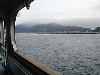 定刻、08:10の船の位置。突堤の向こう側から出港しているので、定刻に行った人からはすでに見えない