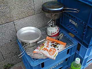 昼食は、いつもと同じく、米を炊いてインスタントラーメン。