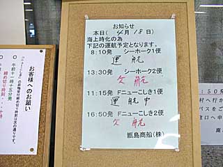 船は欠航。。。。。。