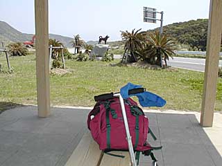 結局、ようやく道が下りになった「孤島の野犬像」脇に屋根付きの休憩所を発見したものの、強風になりつつあり、しかも工事現場が近いこともあって、とても飯炊きの気分にはならず、魚肉ソーセージを2本食べただけで、13:10には出発。