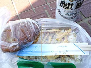 船付き場近くでビールとかやく御飯とさつまあげを買い、船待ちの間に急いでたべた。