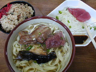 750円の新山そば定食です。刺し身ひと切れすでに胃袋の中です