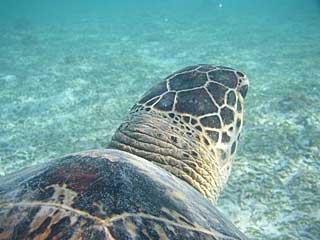 こんなに大きいのは初めてだったし、水深3mくらいの底の海草をバリバリ食べていて、人には無頓着。
