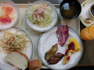 7時に起きて、料金に含まれるバイキング形式の朝食。