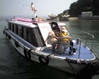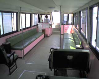 島へ向かう船内。乗客は私ひとり。こんな朝っぱらから、ウエストポーチとキックスケーターの装備で島へ行く、つーのは、妙なヒトに見られたかな。