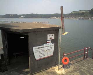 島の北部、的矢への渡し船乗場。南側の中央桟橋と違って、全くひとけがない。写真右の板を動かすと、対岸から見えるから、船が迎えに来てくれるらしい。道路扱いになっていて、料金は無料。道路扱いで無料の渡しといえば、岐阜市内(岐阜といえば私の故郷ですね・笑)の長良川「小紅の渡し」も同様だけど、あそこは大声で対岸の船を呼び寄せてるなぁ。