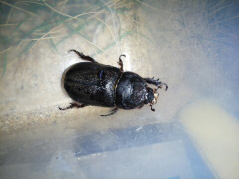 カブトムシのメスかと思ったら、頭が少し平べったくて、小さな角があった。