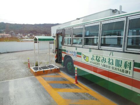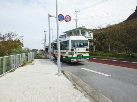 あざまサンサンビーチのバス停から乗ってきた小型バスを撮影