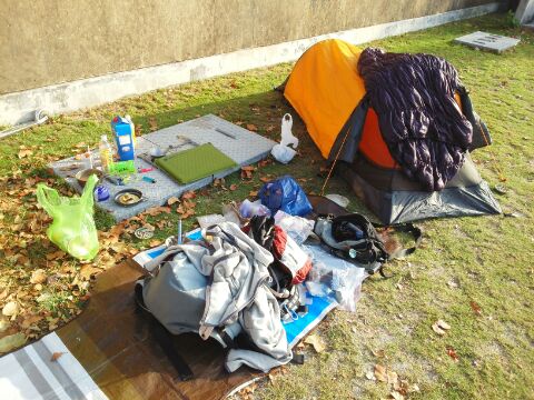 以前、ホンダの懸賞で当たったJuiceBagのリュックの太陽電池部分だけを丸めて持ってきたのだ。