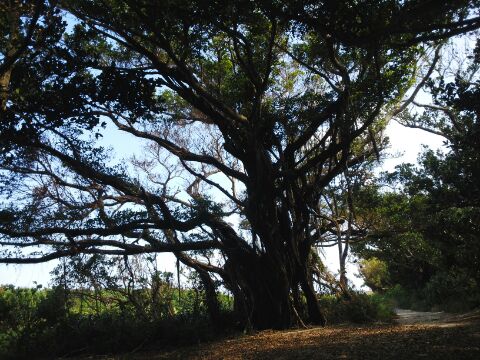 途中、大きな木の下で考える。