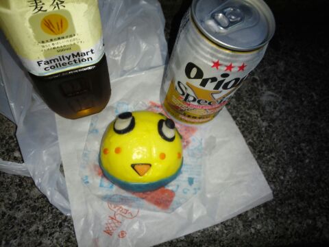 ファミリーマートで、今日発売の「ふなっしーまん」と、ビールと麦茶を買って、バスの乗場を探す。