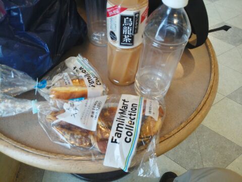 朝食は、コンデンスミルクティーと菓子パン。