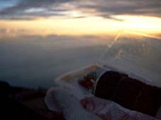 Looking down on the sea fog, eating our packed breakfast. So happy!! In the end it took us 2 hours less than expected to get to the top, including the time spent eating. We made a pretty good time. The third day has come and we're getting pretty used to resting. Incidentally, on the 2nd day, a part-time student took 4 hours from the 8th hut to the top.