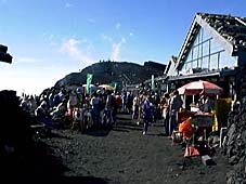 At the top of Mt Fuji, there was a vending machine. However, 1 can cost 300 yen and for hot drinks, an extra 100 yen. Our time was running out to install at the top, hurrying we headed for the 7th mountain hut.