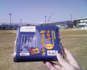 お昼の弁当ですが、鳥ではなくて、豚メインでした。室蘭で焼き鳥と言えば、豚を辛子で食べるんだとか。間違っちゃった人対策なのか、少しだけ鳥も入っていたけどね。
