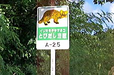 A warning notice about the mountain cat. They are everyw here.