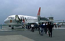 We arrived safely at Haneda in the B747. We used the Super Resort Express Service, but really was there any difference apart from the exterior paint?? At the airport there was a snoopy painted plane (for the skiiers?), it was really quite cute. Talking of such, why does the sky manta mascot often seen on Okinawa maps have legs??