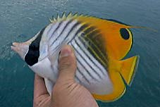 一時間ほどの釣果。私、相当下手らしい。でも、蝶々魚は餌取りの名人で、滅多に針にかからないとのこと。ちょと自慢。