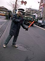 戸塚のバスターミナルにいた誘導係のオッチャン。結構いい味だしてる。ちなみに、戸塚では、菓子を少々と、あんまり寒いので、Kiyomi.Fは、古着屋でトレーナーを買いました。700円でしたが、かなりいいです。