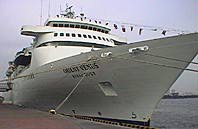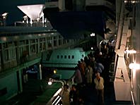 晴海は、夜の紙テープ禁止なので、ちょっと寂しい出航です。バンドの生演奏にシャンパン、といったところ。