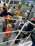 漁船に乗り移って上陸します。客船に装備された通船も使ったけど。