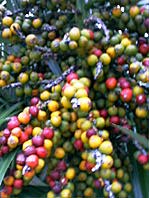 毒々しい色の実。葡萄みたいな実だったので、なめたら舌がチョーピリピリ。良い子は真似しないように。(しないって)