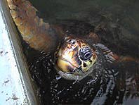 海洋センターのいけすにいたフグと海亀。思わず目があってしまった海亀の撮影はAkiraKがMPEGカメラにて。