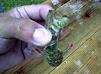 岩場で採ったシャコ。この後ナイフでさばかれましたが、食えませんでした。