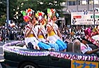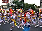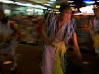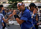 太鼓の打ち手、ここでは男性主導だが、女性の台頭もめざましい。奥は若き女の子