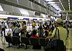 まさにラッシュ! の、羽田空港。この後、とんでもないことが発覚する。なんと、旅行会社のミスで、関空経由高知行きの航空券が、関空乗り継ぎ時間5分という、乗換不可能便であることが判明。航空会社の配慮で、最優先キャンセル待ちとなり、高知直行便の確保に成功する。ただし、予定を大幅に遅れてだけど