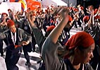 観光客が無料で参加できる市民憲章チーム。まずは、グランドで練習