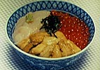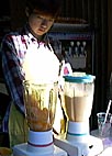 イカソーメン、巴丼、ホタテ焼き、メロンジュースを立て続けに食す