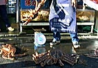 まるで、バナナの叩き売り状態で並べられる生きたタラバガニ