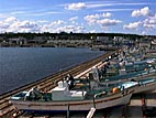 神威脇(かむいわき)温泉。2階の浴槽からは夕日がよく見えます。入浴料は410円。漁港脇にあるため、防波堤から浴室がよく見えます。女風呂の方は、ガラスの下半分に半透明のシートが貼ってありました。(覗いたのか、というツッコミは却下)そういえば、江差で泊まった民宿屋上には展望風呂という浴室があり、街が見下ろせました。高さが低いので、回りからも見られてましたが。ここは、時間により女性との入れ替えをやっていたんだけど、うーむ、見られても平気な人が多いのか?