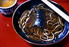 電車が出るまで時間があったので、横山家で名物にしんそばを食す。この辺りでにしんが捕れるはずはなく、ロシア製のにしんである。食いかけなのはご愛敬。大きなにしんがのっていたのよ。