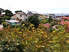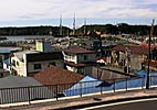 江差の街並み。奧に見えるのが開陽丸とカモメ島。