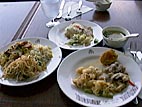 夜は、チェンマイの郷土料理。餅米御飯は手づかみで食すべし。床に車座に座るのだ