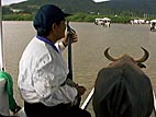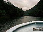 船で上流へと溯ります
