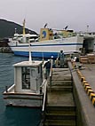 12月1日から半月程「ざまみ丸」は中間検査ドック入。代わりに、3日おきくらいで粟国島村の「フェリーあぐに」がやってきます。ざまみ丸より大きくて綺麗。手前は慶留間島への渡し船