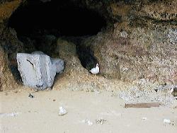 海岸沿いを歩いていたら、洞窟の所にでっけー鳥が。もっと近づいたら逃げてしまいました