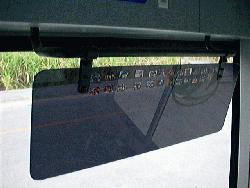 島内で運行されている村営のバス。サンバイザーにプリクラがいっぱい