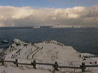 アザラシを観察する若者3人組に出会った。1月中旬から来ているそうだ。写真にも10匹近く写っているのだが、見えないよねぇ。大鷲も写っている