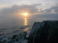 16:20初のフェリーで利尻島へ向かう。礼文島に沈む夕日。利尻島には17:00着
