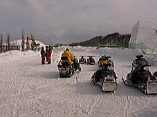 スノーモービル、40キロくらいは出てたと思う。コースも変化に富んでいて面白い。係の人と競争になってしまったんだけど、よい子は真似しないように。ハングオンしながらテールスライドさせて曲がる快感。他の体験施設では、こんな無茶やらせてもらえないと思う