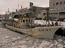 稚内の漁港。凍ってます。流氷じゃなくて、海が凍っているのだ