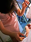 この後、シャワーを浴びて帰る予定が、門限が迫ってしまったので急遽帰る。病院に戻ってみると、予定変更とかで、28日は、全く飲めず食えず動けずの検査がはいったとのこと。慌てて、病院の風呂に入る。と、いう訳で、28日はギャラリーへ行けません。