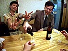 ギャラリーでの仕事を終えた後、つい、ですね。左が現在写真展をされている野田亮さん。左下が私の手。医者には見せられんなぁ。
