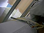 尿道にいれられている管を時々止めて、尿が溜まる感覚を確認する。