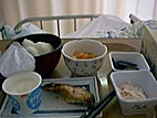 朝食。この後の回診で、ついに尿チューブが取り払われた。痛いと聞いていたのだが、それほどでもなかった。