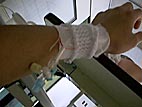 手術後4日を過ぎた頃から、時折咳が出るようになった。これは、手術のために入れたチューブの影響だそうだ(他にも呼吸器の影響はあって、最近、ようやく下唇の腫れがひいた)が、これが目茶苦茶辛い。担当の看護婦さんではないのだけれど、それに対し、抱きつくような仕種をして「看護婦が胸を挟んだらどうかな」と言った方がいて、感動した。その方はすごく小柄で、たとえ彼女が背中を踏みつけたとしても全く無駄だろう。若いせいか、すごく働く、笑顔で働く、天職を見たと感じた。頑張れ!